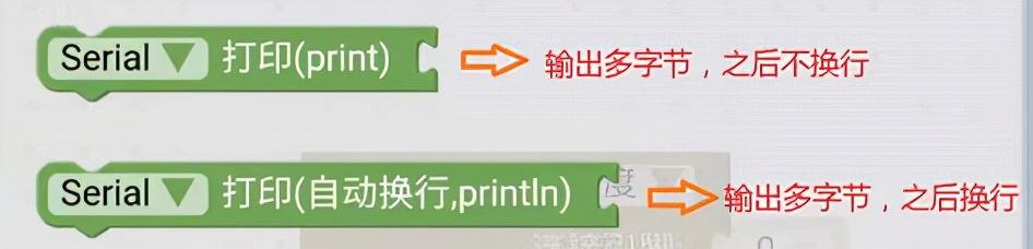 串口发送温湿度值用到了“串口打印”和“串口打印(换行)”两种串口发送积木。