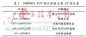 SIM900A通信模块采用串行接口与STM32进行通信。STM32应用AT指令与SIM900A通信[7]。本文主要应用SIM900A的TCP通信功能,涉及关于TCP协议的主要指令如表1所示。