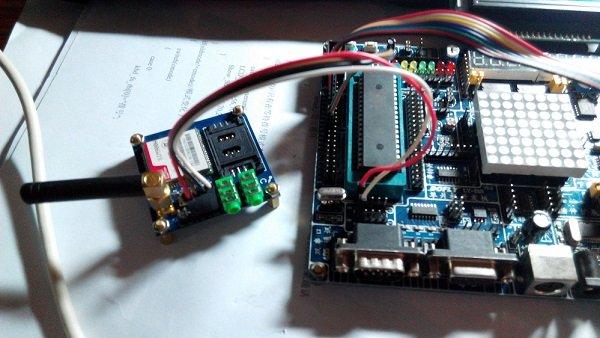 把它和单片机连起来。SIM900A模块和单片机的连接特别方便,因为用MCU的UART串行口,所以只需要两根数据线就可以了,即单片机的RXD、TXD分别和SIM900A模块的TXD.RXD相连接即可。