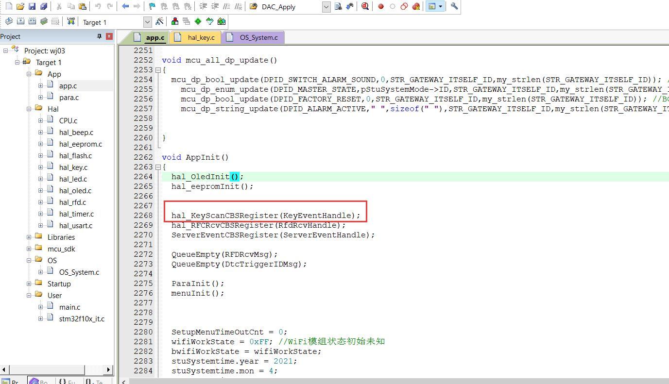 我们要使用按键功能的时候,直接注册下按键回调函数就可以了,如下图:
