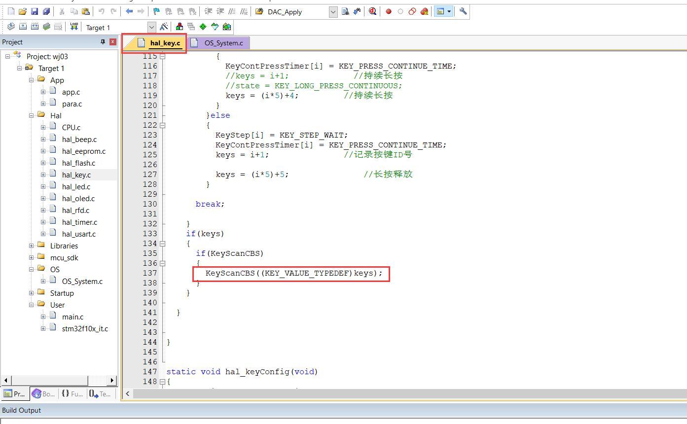 那我是使用了回调函数来传递的,这样做的好处就是,真正能做到这个按键硬件层检测代码和应用层产品程序独立,增强移植性。