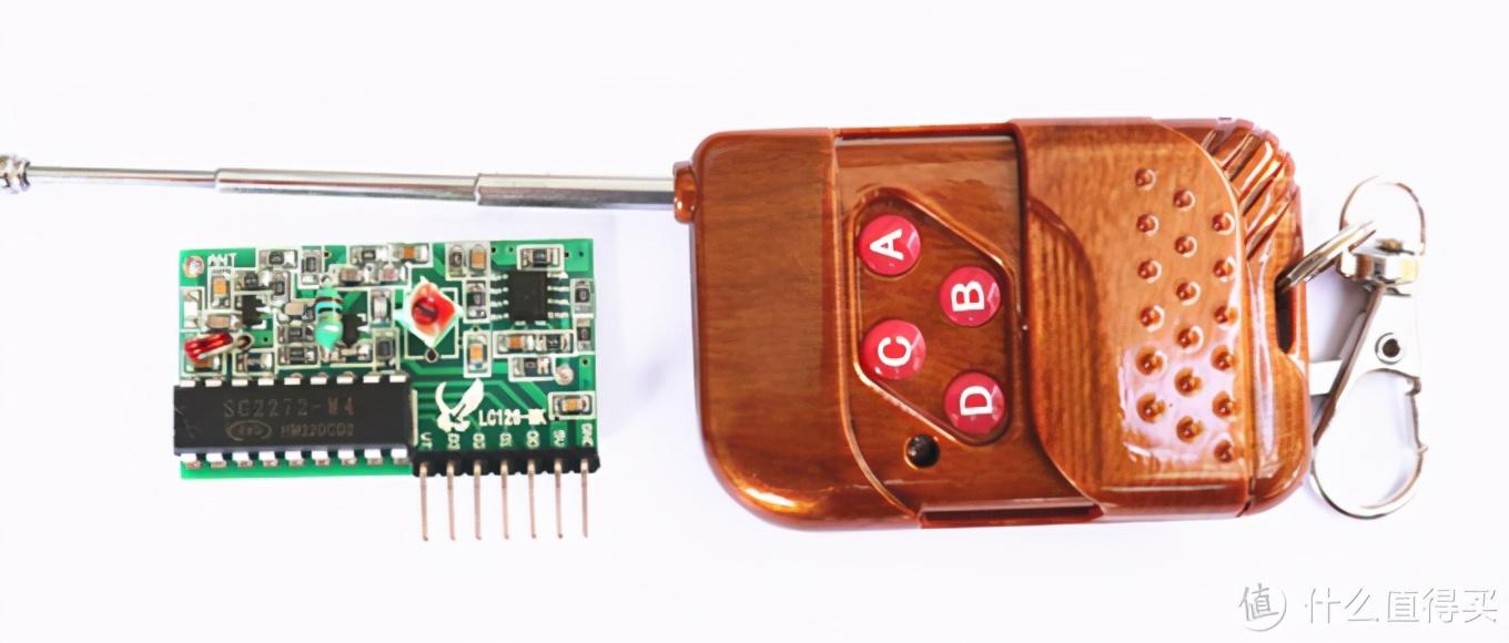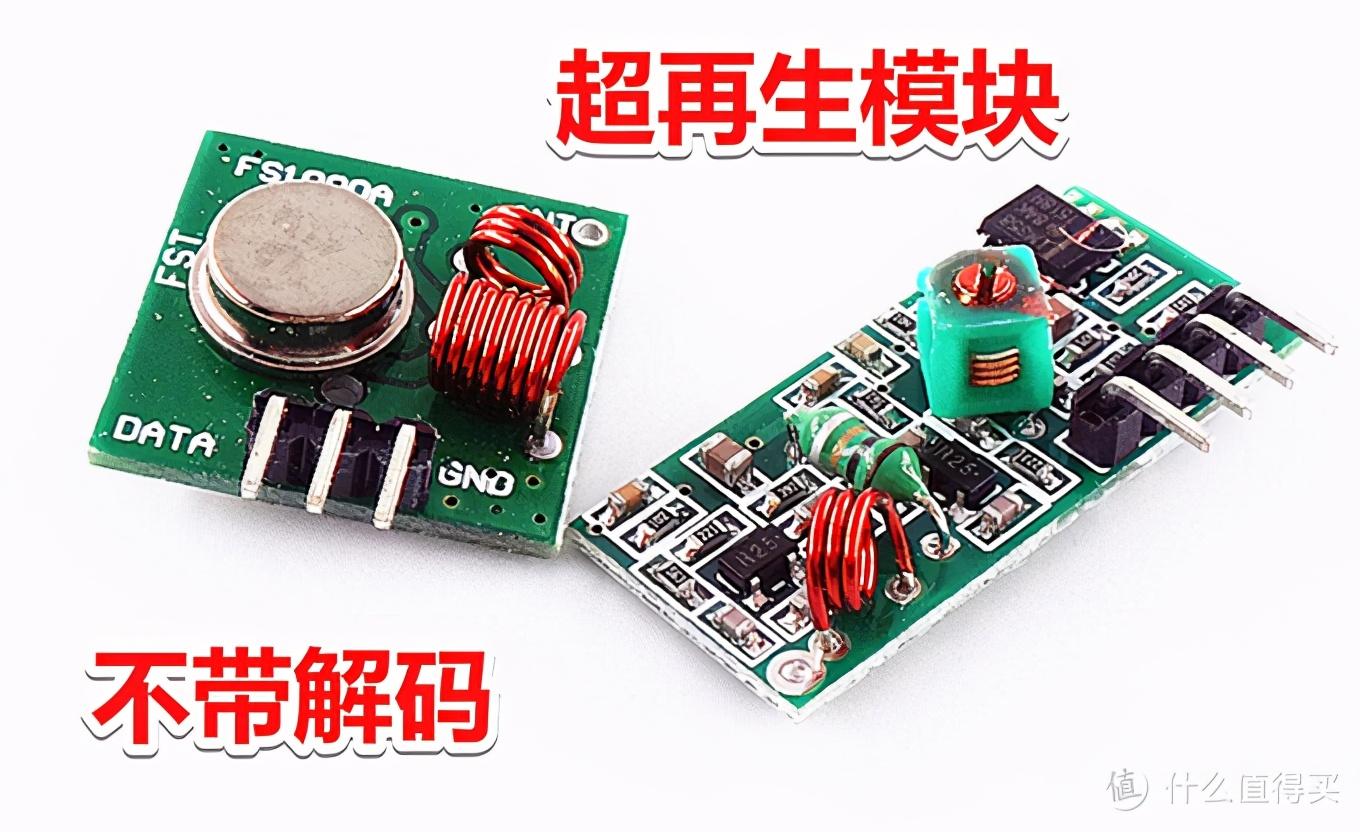 超再生发射/接收模块上如果没有长方形的 18 脚芯片,那就是不带解码的,需要使用单片机或者 2262/2272 芯片进行编解码。
