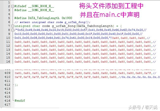 由于编译好的代码较大(语音表格原因),头条平台不方便下载,所以需要自己建立工程,新建c文件和昨天介绍的头文件。