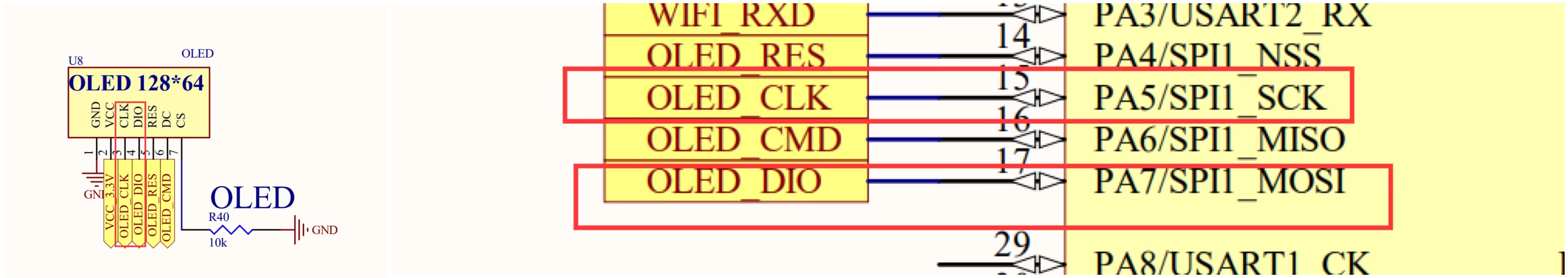 我们主要是控制OLED屏去显示内容,并不需要从OLED读取数据,所以MISO也不需要。