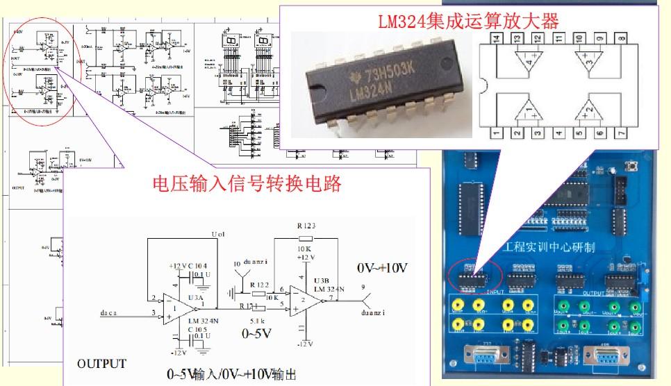 (2)系统反馈电压为0~10V的模拟量信号,利用运算放大器LM324将其转换为0~5V的电压信号作为模数转换信号;