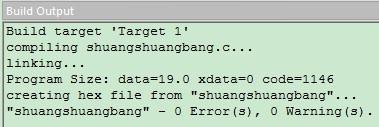 2、单击工具栏的【Rebuild】,可看到状态栏显示的状态(0错误和0警告),这时便完成了Keil工程的建立并产生了可下载到单片机的Hex文件,如下图: