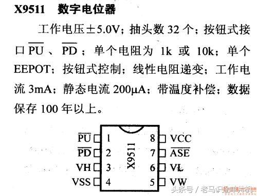 x9511W数字电位器内含5位升降计数器,5位EEPROM存储器和存储及调用控制电路。