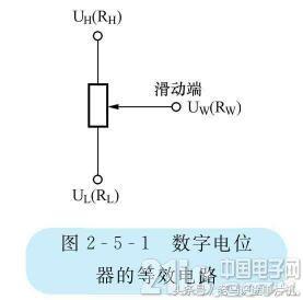 数字电位器由电阻器网络和相应的开关组成,下图所示是数字电位器的内部结构