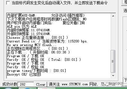 选中后就可以了,接下来就是下载程序到单片机里了。单击下方的下载,如果COM口选择没有问题,此时COM选择处会提示绿灯。等待两秒,下方提示框中会提示:请给MCU上电,此时需要给单片机上电或者关掉电源再打开即可。部分下载器可能支持直接下载,不用断电再上电,具体视情况而定,一般需要进行一次断电再恢复的操作。
