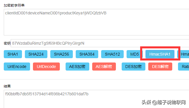 加密用的秘钥是图9中,三元组信息里的DeviceSecret,我们网上找一个加密算法的网站。