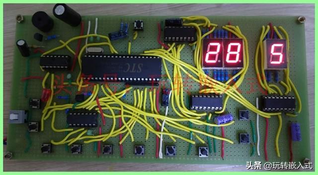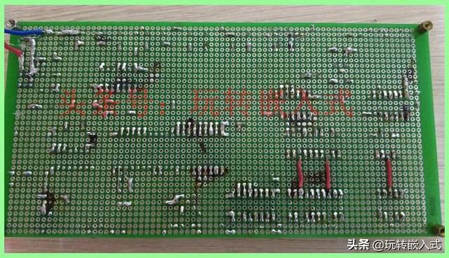 为了实现功能验证,选择用万用板手工焊接实现这个设计。最终的实物图如下所示: