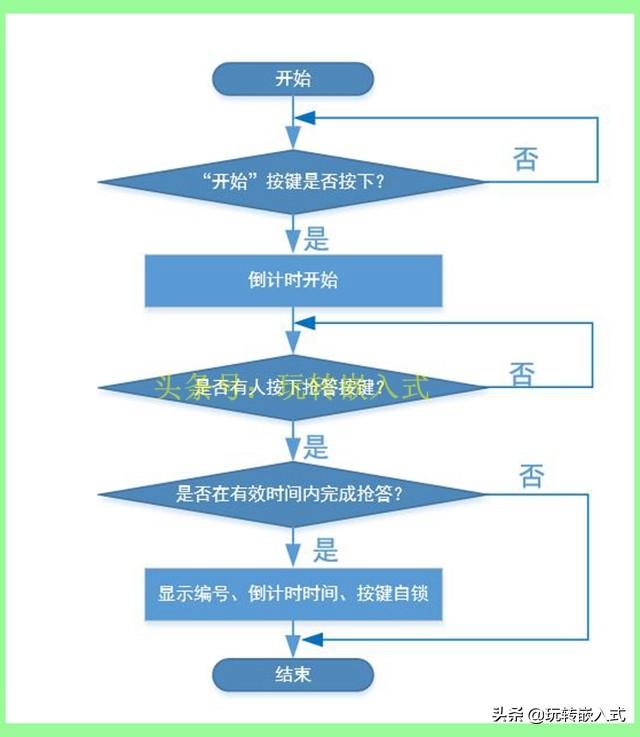 该设计使用keil5作为编程环境,涉及到数码管显示、按键检测/互锁、蜂鸣器发声、定时器等相关功能模块的程序编写。程序设计的流程图如下所示。