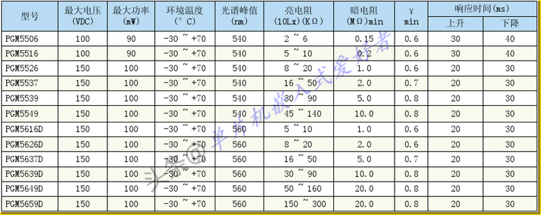 一般光敏电阻在亮的环境下其电阻的阻值一般在几K~几百K之间,在暗的环境下其电阻值一般在几百K~几十M之间,具体看你选的是什么型号的光敏电阻了,下面给出一张光敏电阻不同型号各个参数参考图。