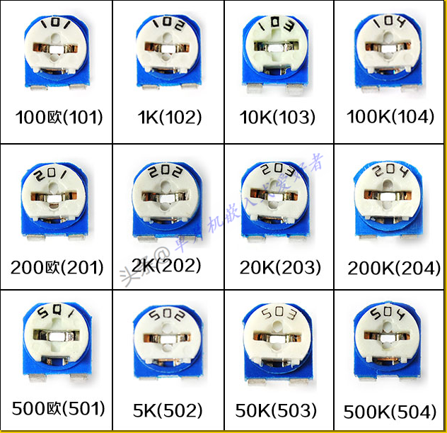 器件上的标号,表示电阻的阻值,采用的是数值标示法。502就是0~5k之间的阻值可调。
