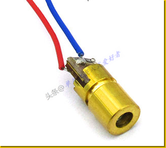 上图的激光头由发光管芯、聚光透镜、可调铜套三部分组成,买来的时候一般透镜焦距都是调整好的,并用强力胶水粘好了。我们直接接上对应的电源电压即可使用,发出激光。