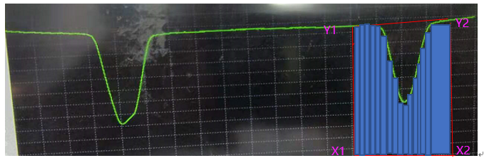 在实际应用中确定了峰的位置和峰宽之后,我们就可以在采集的数组中找到对应的Y1,Y2,具体算法如下:
