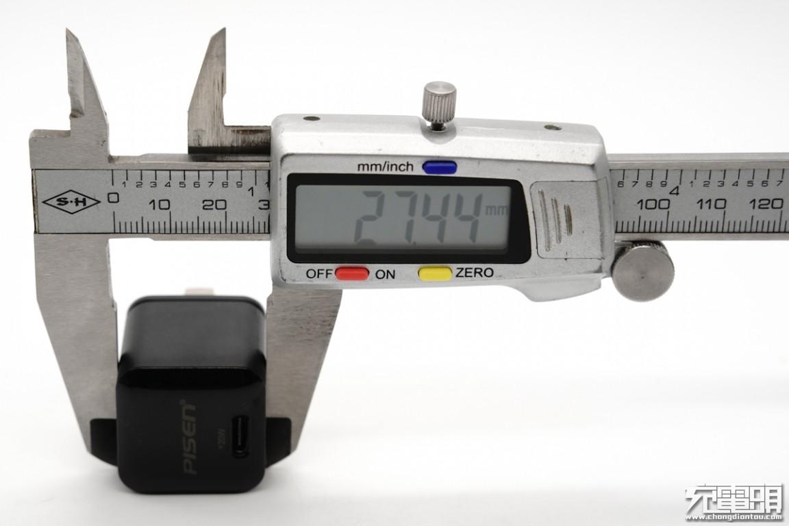 使用游标卡尺实测充电器机身长度为29.95mm。