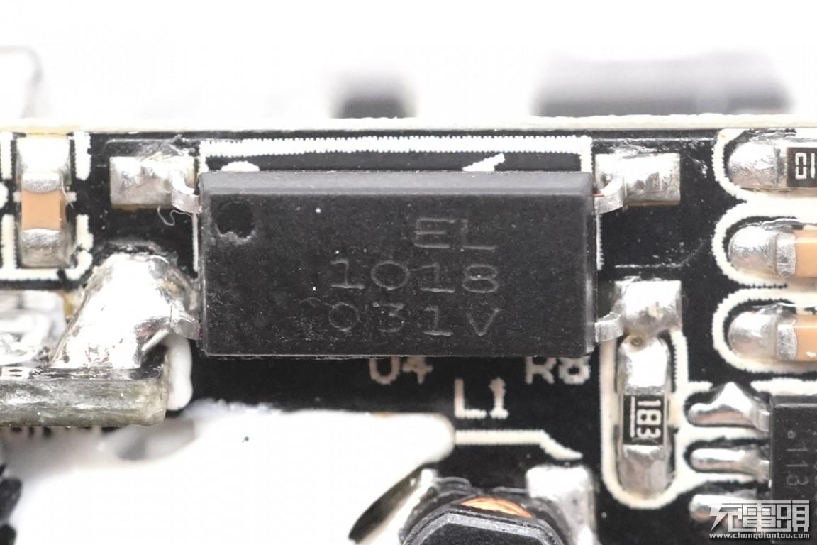 亿光EL 1018光耦,横跨在初级和次级之间,用于初级次级通信,反馈输出电压。