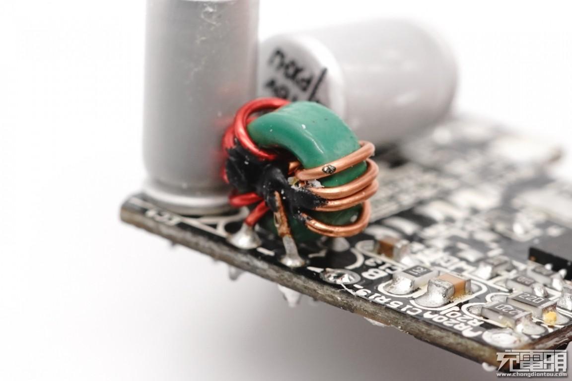 将侧面小板拆下,小板正面设有滤波电感、电容以及协议芯片。