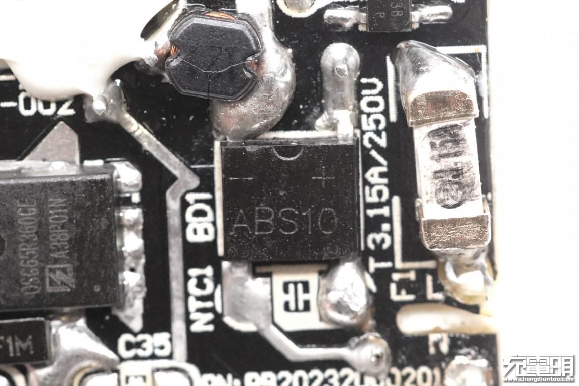 经过对充电器观察分析发现,品胜20W PD快充充电器采用了典型的开关电源输出宽范围电压,再由PD协议芯片通过光耦控制输出电压的架构。下面就由输入端开始为大家一一介绍这款产品的用料。