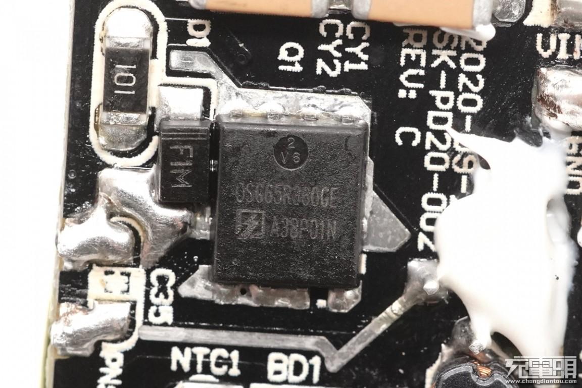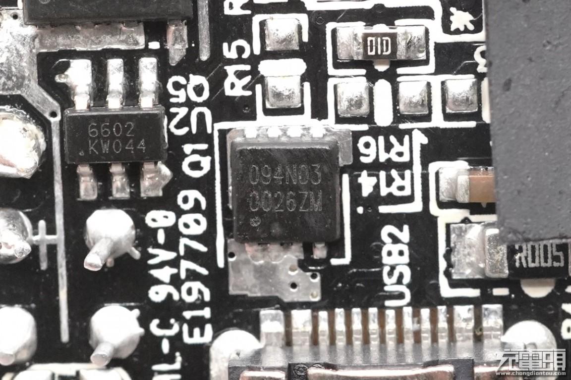 背面设有次级同步整流控制器、同步整流MOS管和输出VBUS开关。