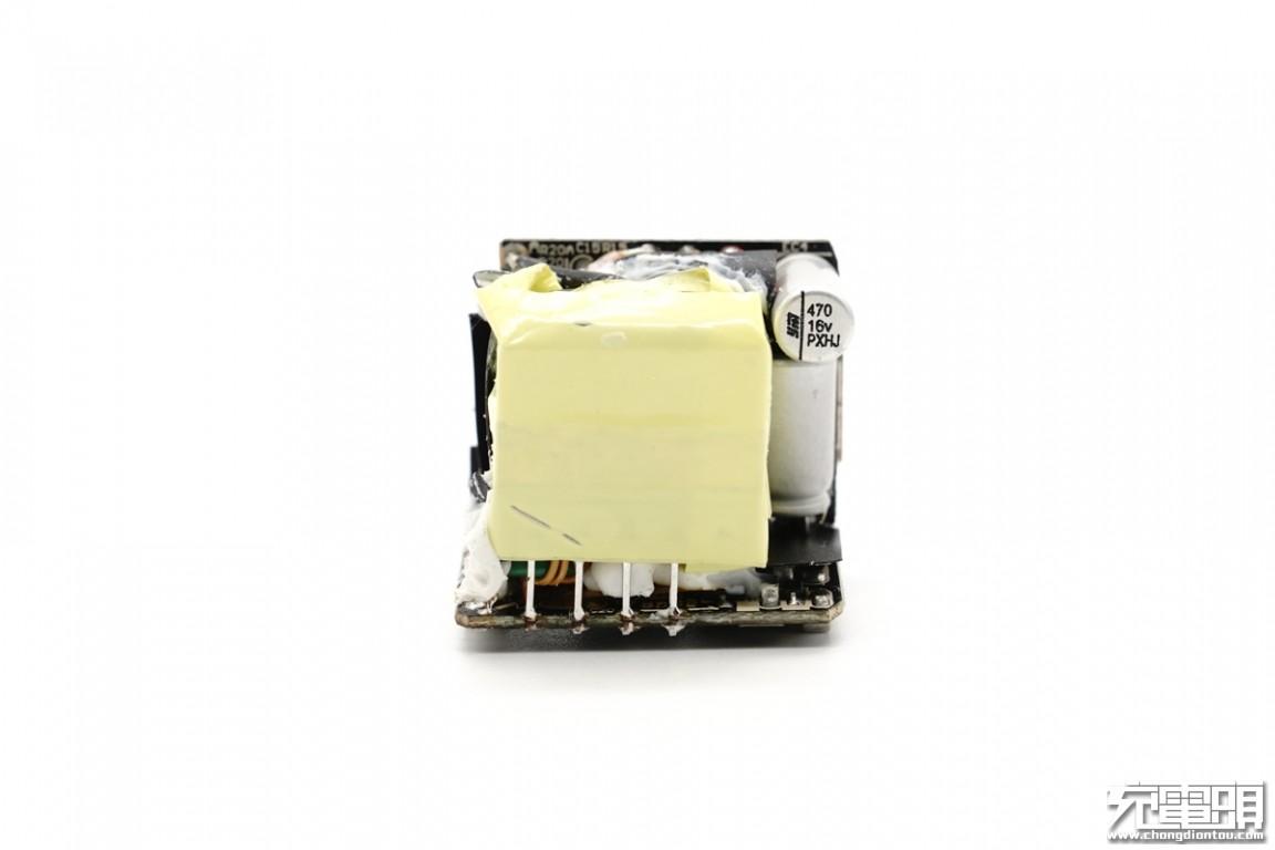 充电头网通过拆解了解到,这款充电器输入端采用导线连接通电,内置两块PCB板相互垂直焊接组成,输入输出端采用永铭针对20W快充市场推出的小型电解/固态电容进行滤波。此外充电器采用开关电源加协议芯片架构,初级开关管采用东微高压超级结开关管,同步整流管采用维安低压MOS管。输出端由伟诠WT6636F协议芯片控制输出,该芯片通过了USB PD3.0(PPS)认证,性能有保证。