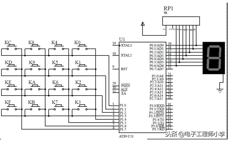 图8-4 行列式键盘电路连接图