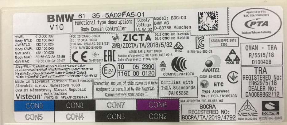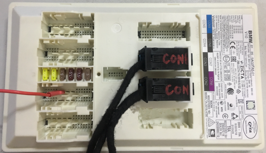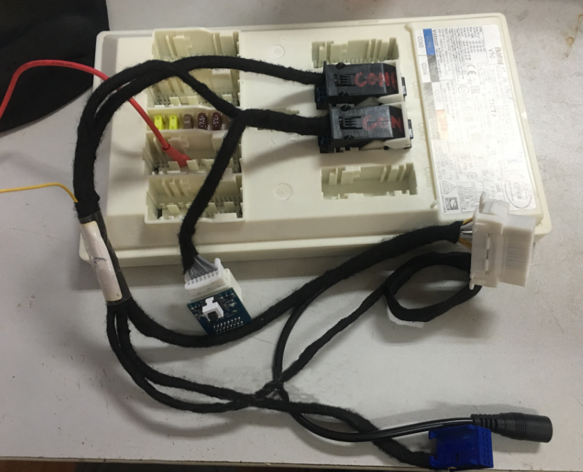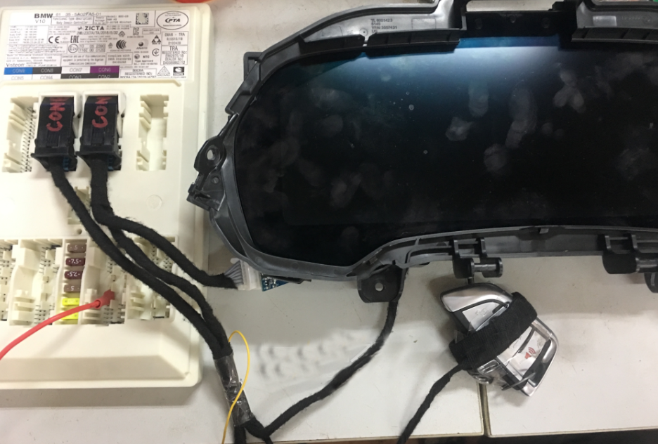 这个表直接接电源是不会亮的,必须要配合车身控制器一起使用才能点亮,车身控制器(Body Domain Controller)俗称BDC,也就是车身电脑板,负责控制车身各个系统车门车锁,车窗,仪表盘等等许多功能,下图看一下BDC长啥样,一大块长方形板子,上面一堆插头,也说不清干啥用,反正有配套好的线束,插上就是了