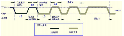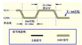 DHT11 数字湿温度传感器采用单总线数据格式。即,单个数据引脚端口完成输入输出双向