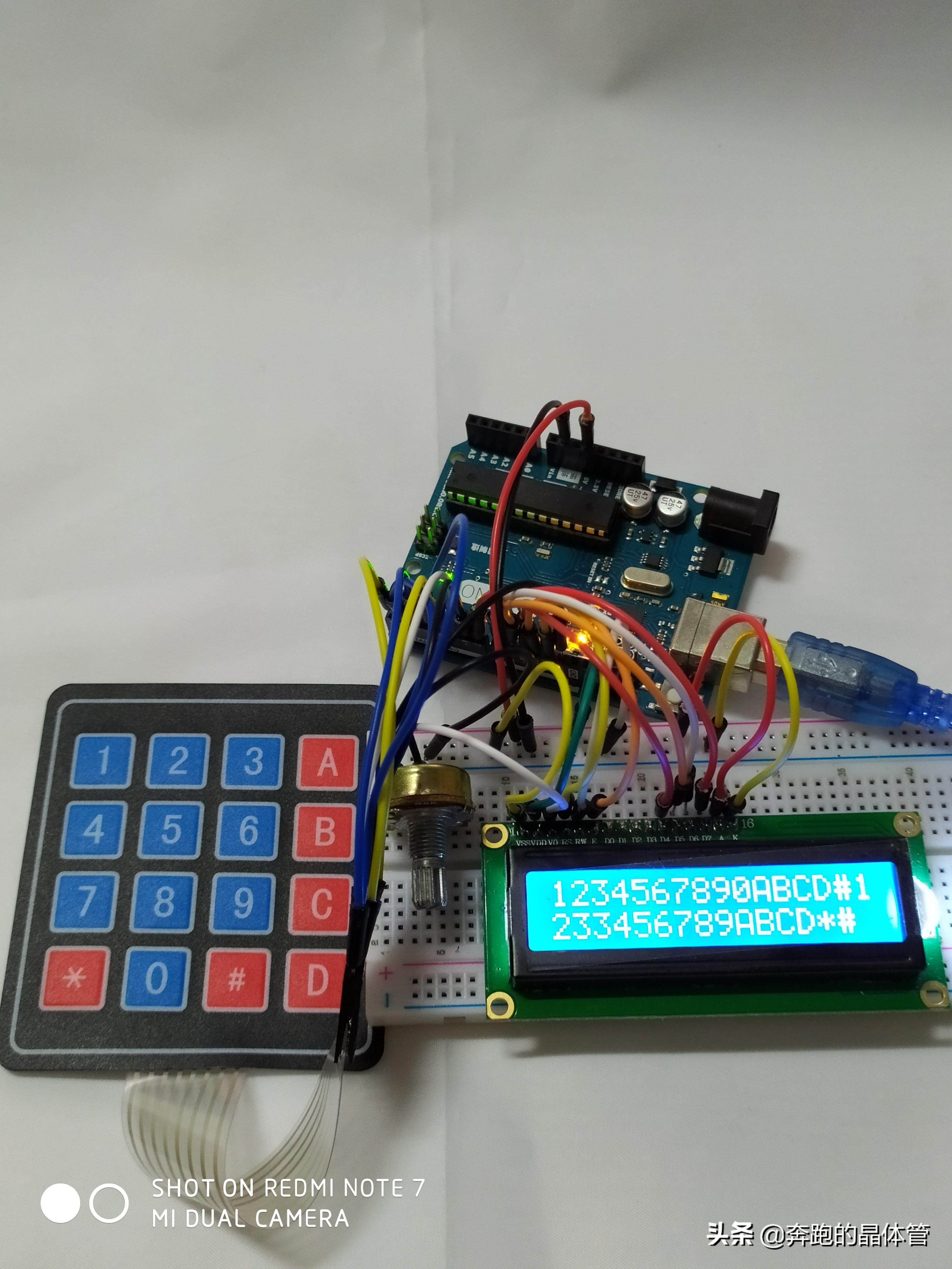 实物连接图如下,当按键按下时候,对应的键值会在LCD1602上显示出来。