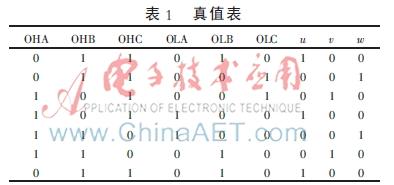 对第一段单三拍上升沿触发和反转工作模式下的输出进行一下分析,其中输出的绕阻u,v,w对应三相步进电机的三个绕阻。在该段时间的各个输出如表1所示。
