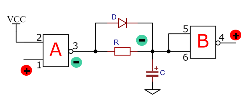 它由两个与非门外加阻容器件串联而成,当我们给第1引脚一个低电平,也就是喂狗操作的时候,A与非门输出高电平,此时电容C的两端开始充电,