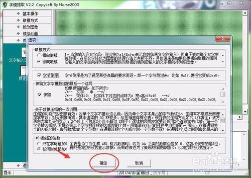 5、单击"取模方式"