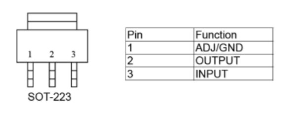 关于AMS1117,是一个贴片稳压3.3v芯片,引脚如下,关于具体芯片数据大家可以去datasheet查找。
