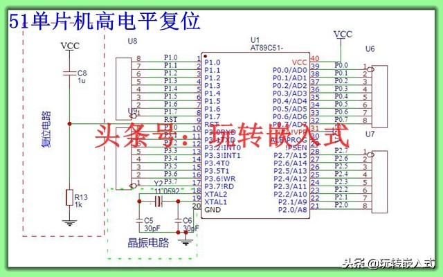 对初学 51 单片机的人来说,可能不太能理解复位电路,复位电路有高电平复位和低电平复位两种,C51 是高电平复位,现在一般的 MCU都是低电平复位。