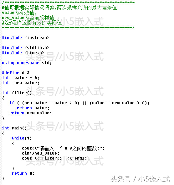 自己输入的1、2、3、4、5、6、7得到的都是当前值,0、8、9得到的是上一次的值。其实限幅滤波法一般使用于处理变化较为缓慢的数据,例如:温度、位置等。关键是合适的门限值的选取。优点:能有效克服因偶然因素引起的脉冲干扰。缺点:无法抑制那种周期性的干扰平滑度差。中值滤波(中位值滤波)