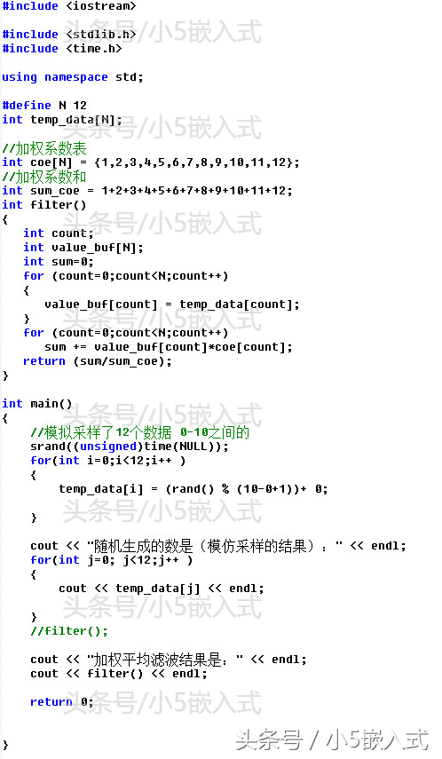 这个可能是最简单的了,小学生可能都会这个思想了。那就是连续采样好多个数据然后求和在除以总采样数了。