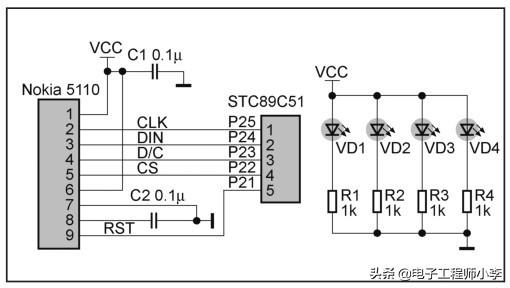 这里以STC89C51 单片机为例,介绍Nokia 5110 液晶屏的驱动过程,如果采用AVR 或STM32 等自带 SPI 接口的单片机,可以通过 SPI 串行接口直接与 Nokia 5110 液晶屏通信。STC89C51单片机没有SPI接口,通过I/O口进行模拟也很方便。