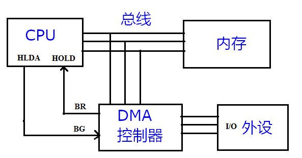 从这个图可以看到,DMA和CPU是共用总线的,如果二个人同时需要使用总线怎么办呢,可能会让CPU等一下,但是这种对CPU的影响是非常小的。