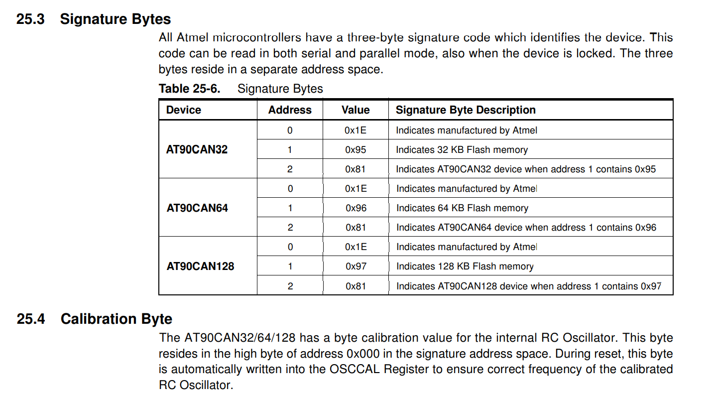我们有两个平台AT90CAN和AT91SAM7,查看了相关数据手册,AT91SAM7没有任何可用的类似唯一ID的资源,但是AT90CAN有一个Calibration Byte的东西,出厂设置且确定,几十个芯片可能会有两个相同的,可以理想得完成此功能。相当于拥有了一个字节的唯一ID可以利用。