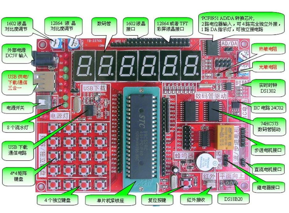 初学者想自学单片机只需要买一块51开发板 就行了,也就100来块钱,比请妹子吃饭看电影划算,这里建议购买STC的,烧录程序比较方便。