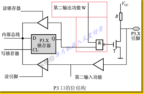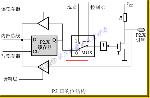 另外P0口没有内部上拉电阻,是一个真正的双向口 ,引脚内的是一个开漏结构。