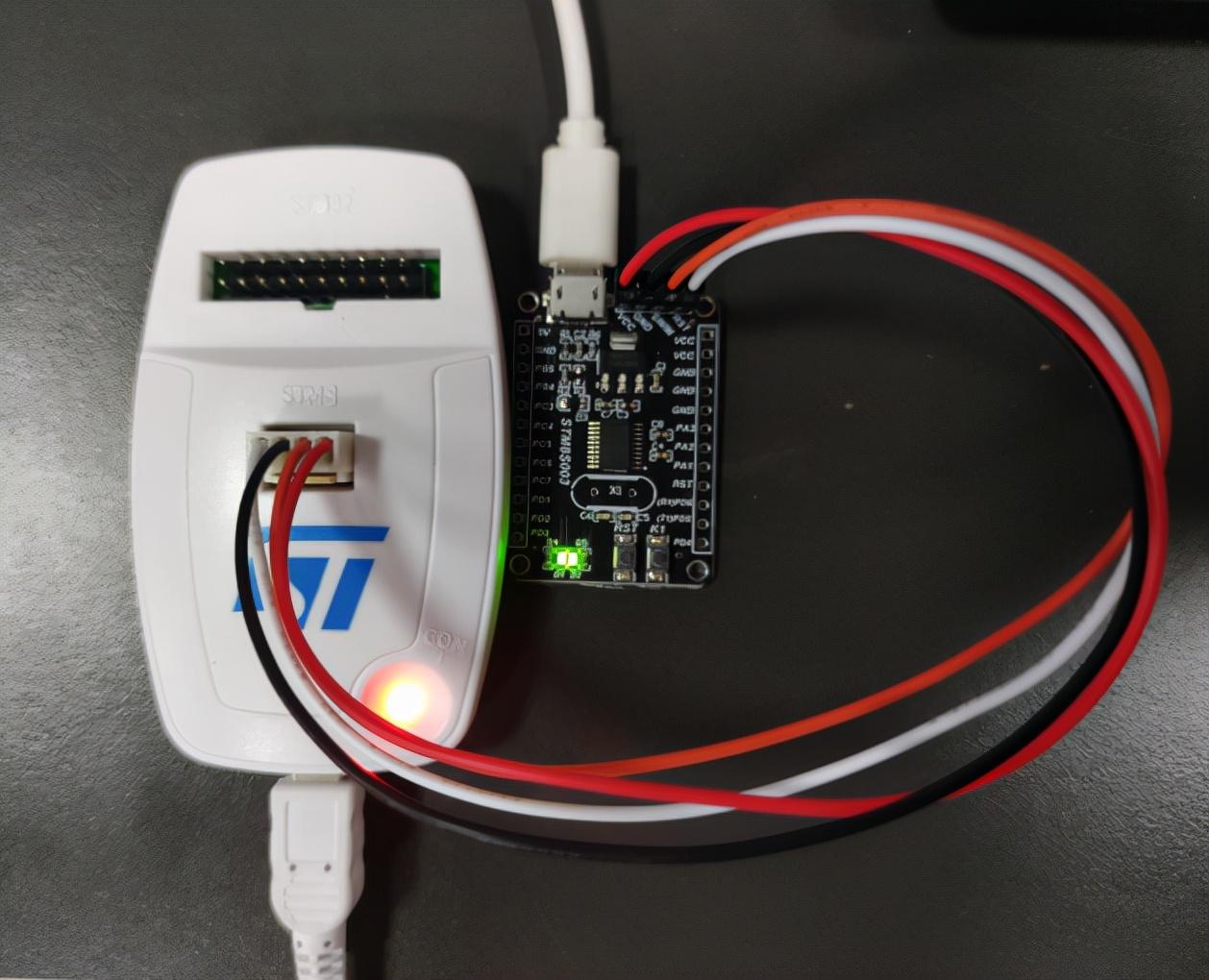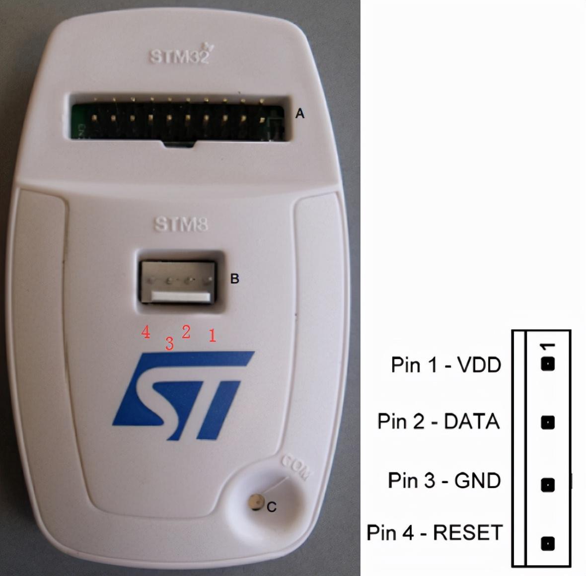 这种下载方式是针对STM8系列的单片机,这种方式只需要一根线即可实现程序的下载,所使用的工具为ST-Link,如下图所示:
