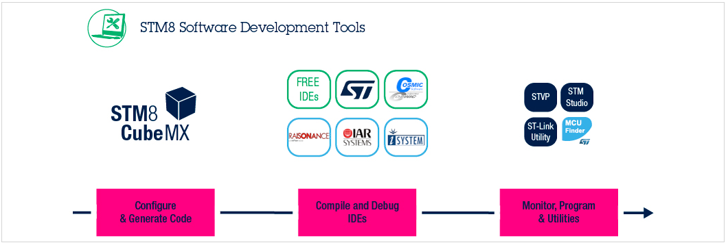 STM8系列的单片机程序下载就两种接口,部分型号不支持UART的下载方式,但软件工具多种多样,根据自己的实际操作习惯使用相应的软件工具,推荐使用ST-LINK下载器和IAR IDE下载和调试程序。
