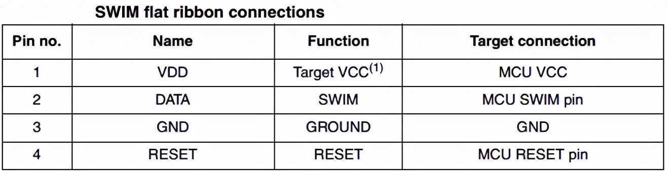 ST-LINK与STM8单片机的接线如下图,下载器的VDD的供电电流较小,开发板最好也单独再供下电