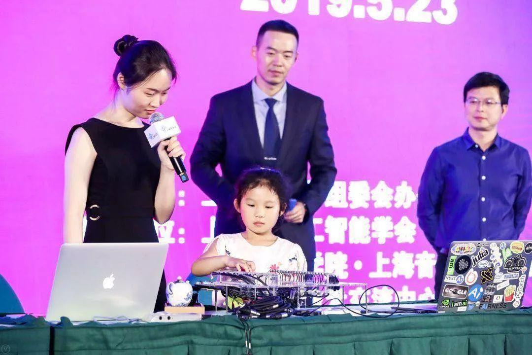 王玉在2019上海科技节指导小观众弹拨光感电子古筝