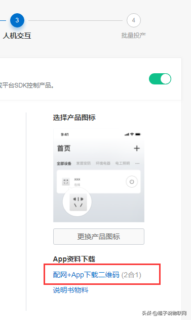 我们进入第3步,人机交互设置页面,我们点击红圈所示的内容,然后弹出页面,需要我们填写设备名称,以我的为例,填上D001,然后就可以生成我们需要的,添加设备的二维码,因为文章中不能出现二维码,所以超子就不展示了。到此我们本次51单片机的DIY程序设计,基本就完成了。