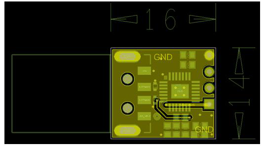整个的PCB设计完成,尺寸只有16*14mm,比一个无线鼠标接收器的尺寸大不了多少,非常的小巧方便,甚至比串口线接头还要小很多。