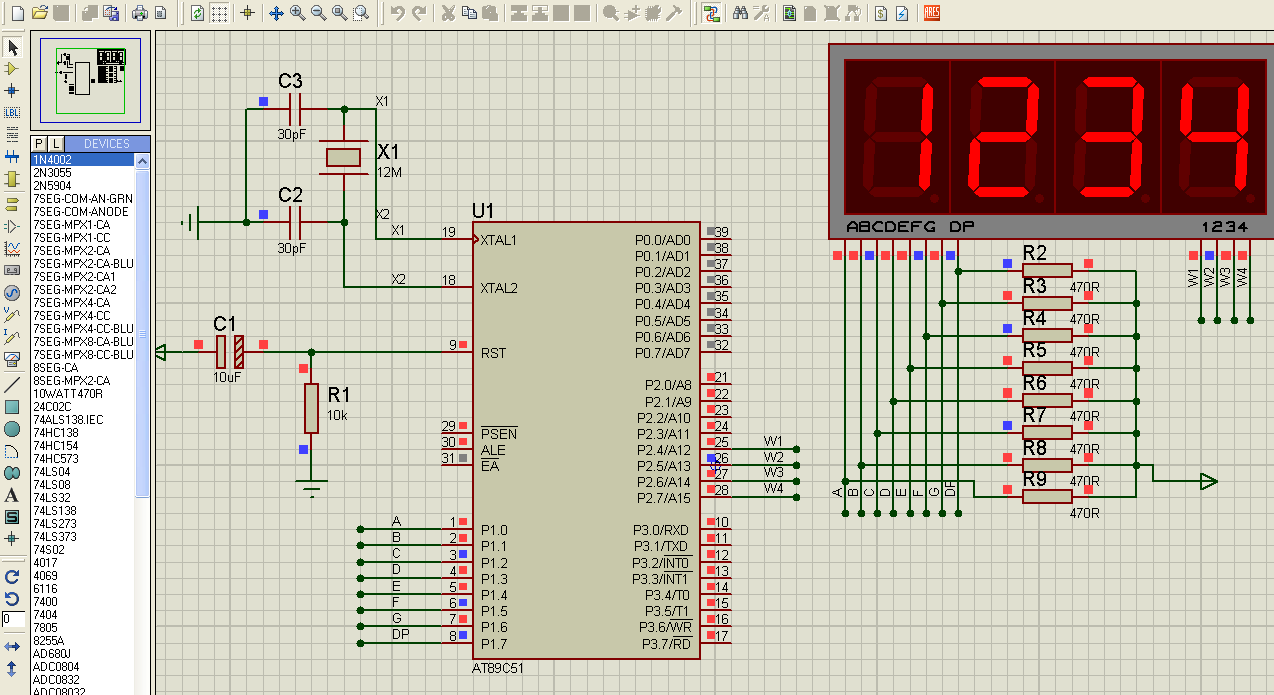 要求数码管动态显示1 2 3 4,动态显示就是一个一个显示过去,只是速度比较快,眼睛看上去像一起显示的样子。