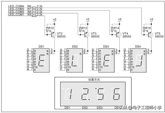 与通常使用不同的是数码管的放置方式。如何实现显示功能,以下详细说明一下。